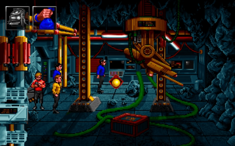 The gameplay is mostly point and click based. You can select whether to walk, look, speak to, or interact with; scenery, people, and items. Your inventory is available at the top left of the screen where you can choose to wield weapons or items when interacting with your surroundings. You also have the ability to select characters to interact with your environment which adds to the realism of the game…you wouldn’t ask Bones to decipher a computer lock would you…”Damn it Jim I’m a doctor, not a locksmith!!”.
