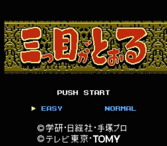 This week’s review, is Mitsume ga Tooru (The Third-Eyed One) an action-platformer based on the manga and anime series of the same name. It was developed by Natsume and published by Tomy for the NES in 1992.