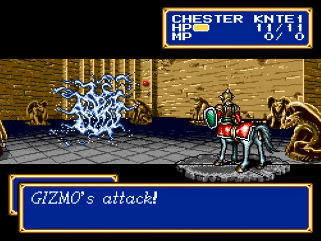 Like SF (1992), I think this game is beautiful. The environment in the overworld maps (forests and trees) have been improved, but the sprites themselves and the battle scenes are practically the same. This is not necessarily a bad thing, as they are a great improvement on games like Phantasy Star IV (1993), and better than the graphics of games like Earthbound (1994), Dark Sun: Wake of the Ravager (1994) and Final Fantasy VI (1994) (FF III in North America). Yes, I personally prefer Shining Force II‘s graphics to FFVI (1994).