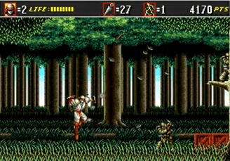 One issue I have with the controls is that in order to perform a somersault, you need to press the jump button a second time when Shinobi is at the peak of his first jump, else he will just begin to fall as normal. I found this frustrating, especially when the levels scrolled up or when you had to jump onto the falling rocks. I lost many lives on these levels and I felt that the window with which you needed to perform the somersault was a little too narrow.