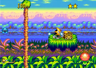 I think this game looks great! The sprites look fantastic and are very detailed. I particularly like how the enemy sprites explode, reminiscent of many arcade games. The levels are also incredibly detailed with many having multi-layered parallax scrolling. In Level 1 when you enter the cave, the transition in the background is very smooth. The background of the forest fades and after a brief black backdrop, the interior of the cave fades in. I also really liked Level 5 where you are battling through a forest that is ablaze. The oranges and reds of the background really give you a sense of heat from the inferno. You can almost feel it coming through your TV screen!