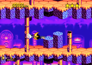 The creators have added some nice new moves to the game to make things a little more interesting. For example, Shinobi can now perform a mid-air flying kick, can jump off walls to gain higher ground, can hang from the ceiling (which I don’t recall him doing in Revenge of Shinobi (1989), and a running slash that makes him temporarily invincible.