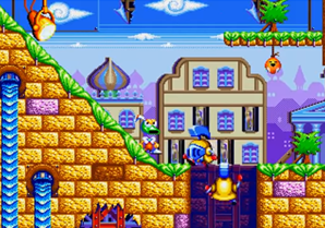 Most of the backgrounds for the levels looked good, but I just felt that they lacked something. Maybe they just weren’t full of vibrant colour that I have been used to with so many Mega Drive games. Then again, maybe the drabness was to emphasise the polluted state the Earth is in. Even so, the flags flying in the breeze in particular look very realistic.