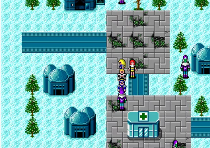 There are two gameplay modes. The first is from a near top down perspective whilst walking around the villages and planet surfaces. When walking around the surface of the planet, outside the cities, and in caves etc. You come across random battle encounters where you must choose to fight your opponent or attempt to run away. When exploring dungeons and caves, and in a battle, the view switches to first-person mode.
