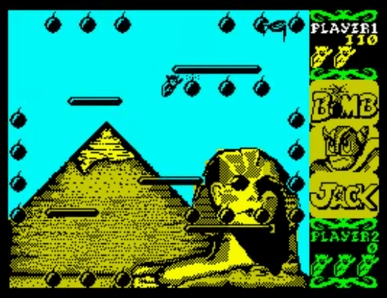Bomb Jack is a platform game developed and published by Tehkan. It was released in the arcade in 1984, and later ported to SG100 (1985), Amstrad CPC, Commodore 64, ZX Spectrum and Commodore 16 (1986), Atari ST and Amiga (1988), Game Boy (1992), Java ME (2003) and Atari XL (2008). For this review, I chose to play the ZX Spectrum version.